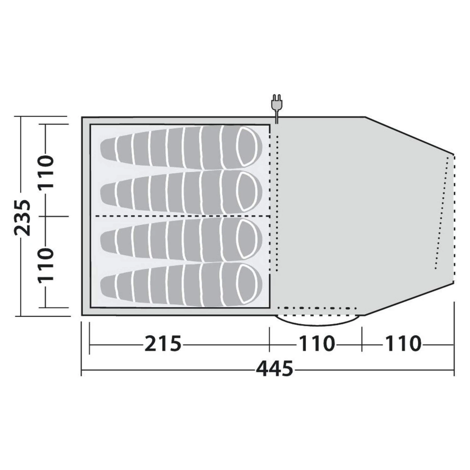 - Abgedunkeltes Innenzelt mit herausnehmbarer Trennwand